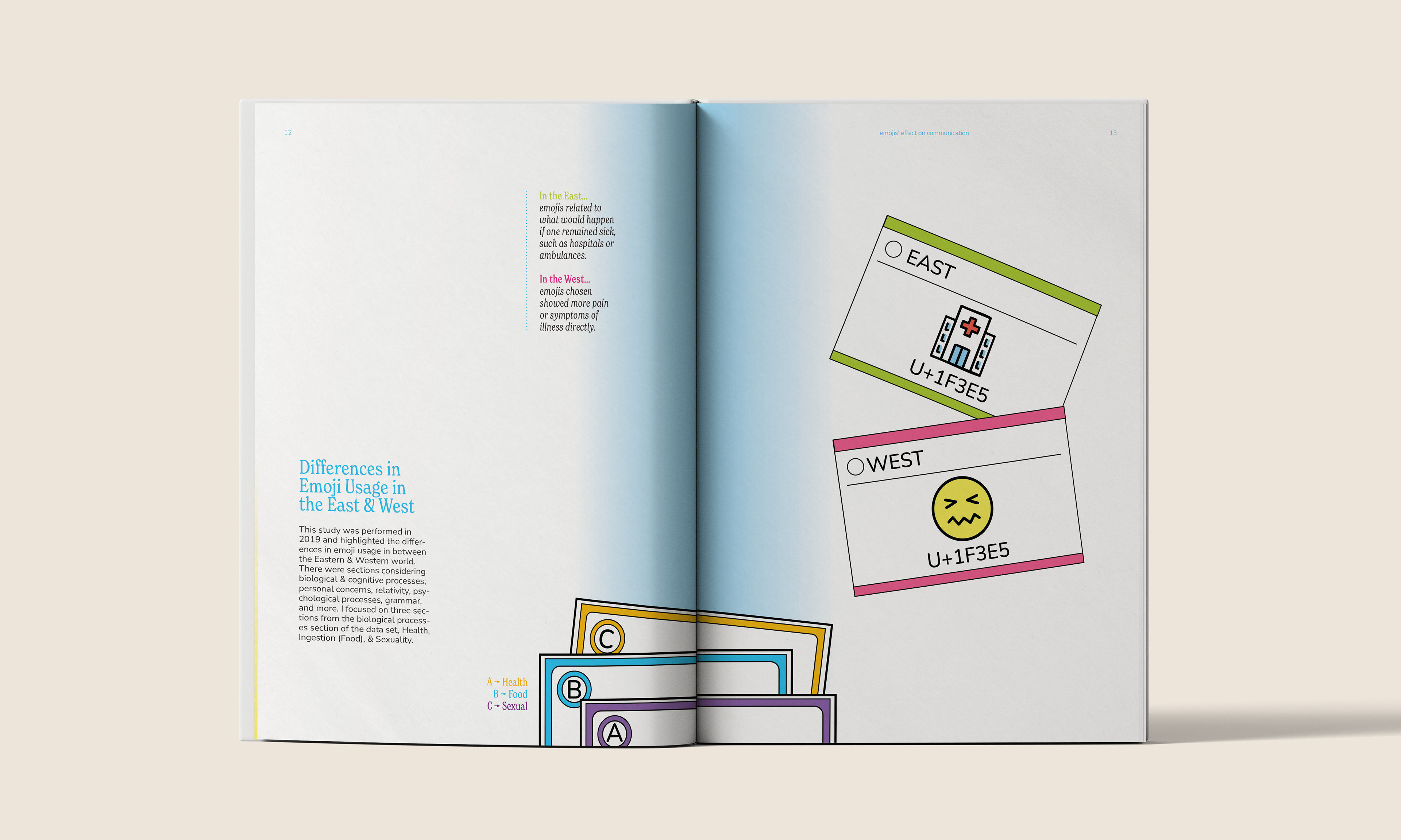 After completing the motion work, I decided to create a booklet as a companion piece. This booklet covered the same range of topics as the videos did, but had a more detailed breakdown of the data found in the papers.